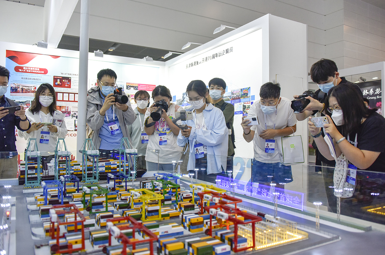 走近展区,津港家族的“天天”“津津”“强港”“登登”在展区热烈“欢迎”观众的到来,循环播放的天津港形象宣传片和大幅天津港全景图引人瞩目,使观众瞬间感受到天津港的大气与繁忙,一同走近这座跨越山海阻隔,将世界贸易联通的国际大港;牢记习近平总书记视察天津港的殷切嘱托,以高质量党建引领企业高质量发展,津港人不断开创天津港蓬勃兴盛的新局面;天津新港重新开港70周年的历史瞬间、历年来天津港先进典型、6T体育核心价值理念、印象津港、津港家族等融为一体,形成天津港特色6T体育体系。
